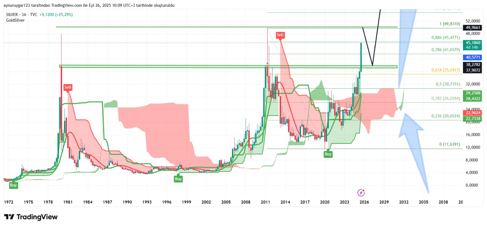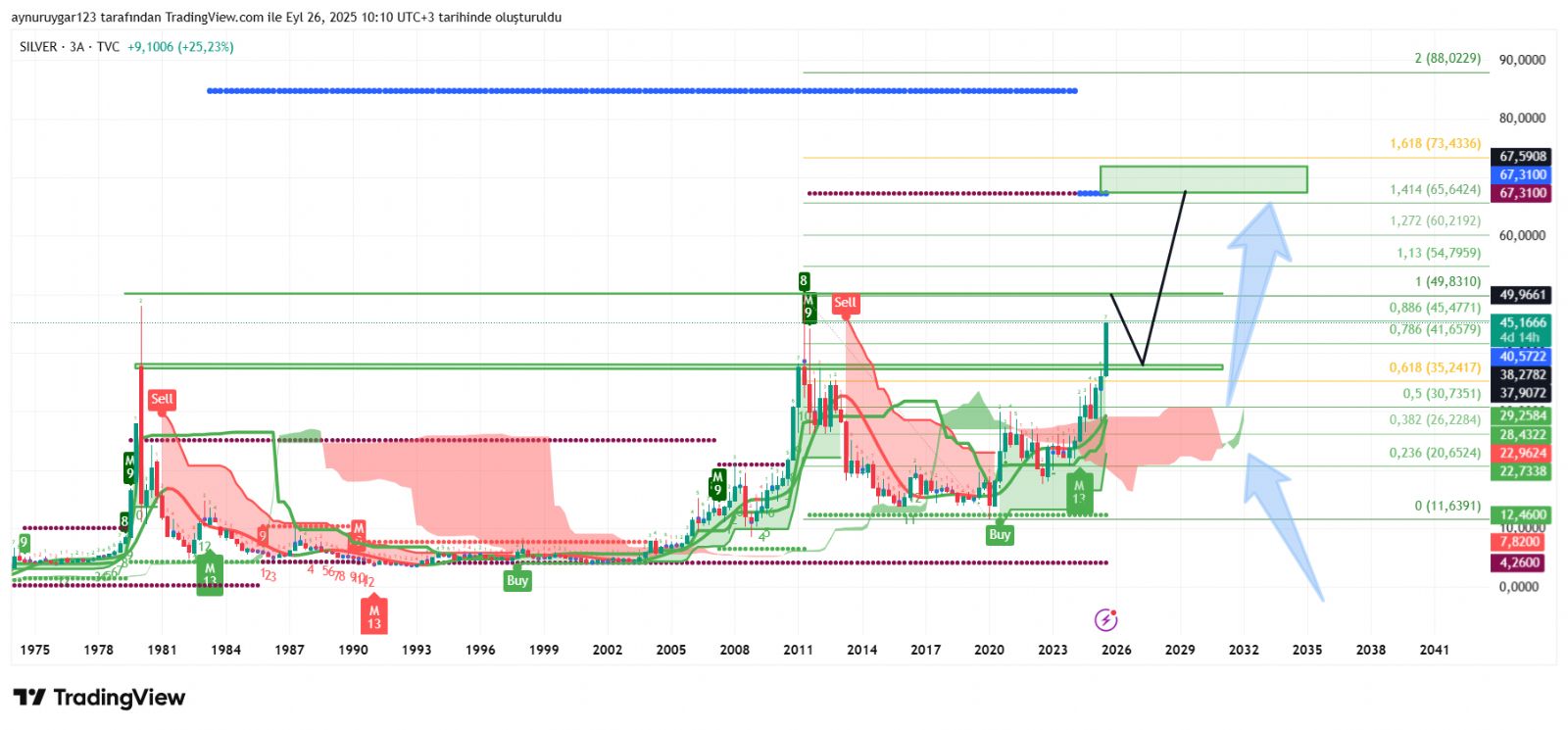 battıbalık ()Aynur hanım normalde ufak yatırımcı kâr satışını verirken büyük yatırımcılar kurun düşmesine izin vermedi. Beklediğiniz kapanışı yapacak. Hatta beklediğinizin üzerinde bile olacak. Aylık gr tl grafiğine baktım üst bollingeri aylık grafikte delmiş. Tahminen kapanış ile üst bollinger yukarı doğru açacaklar. Fiyatı bir miktar geri çekip indikatörleri gevşetirler. Mumu bollinger içine alıp tekrar yükselişe devam ettirirler diye düşünüyorum. Benim beklediğim bu hareket ile sizin grafikler örtüşüyor. Geçen hafta alım yapacaktım yükselişi farkettim ama gidemedim. Bu hafta alıcam. Düşeceğinin farkında olarak. Düşerse fırsatım olursa tekrar alırım. En güçlü alımlarım 4.65 ile 20 tl arasında buradan alımım terse kalsa panik yapmam. Daha çok almaya bakarım. Sizin 1980 den aldığınız benimde 2011 den aldığım fincan kulp formasyonu hedefi 72 ve 85 dolar ... Yani her halükarda aldığım fiyatın üzerine gidecek. Bu teknik kısmı birde bunun temel analiz kısmı var. Para sistemi sürdürülebilir değil. Gerek ülkemizde gerekse globalde 2016 da söylediğim stagflasyon krizinin bir dayanak noktası vardı. Piyasadaki para miktarı ile işlem haçmi arasında çok büyük fark var. Büyük bankaların ve merkez bankalarının gümüşü fiziki olarak rezervine dahil etmesi olası kriz senaryosu sonrasında para sisteminin değişmesi durumu için olduğunu düşünüyorum. 1 banka 5000 ton fiziki stok yapıyorsa bu sistemin hatalı olduğunu farkettikleri için kendilerini güvene almak için yapıyorlar. Konu para kazanma olsa fizikiye ayıracağı parayı vadeli işlemlerde kullanıp fiyatı yukarı vurur. Konu para kazanmak değil 3 yada 5 dolar veya 70 yada 80 dolar kazanmak değil böyle olsa fiziki alım yapmaz. Hatta gümüş yerine sanal paraya yönelirlerdi. İlerde belki mantar gibi çoğalan sanal paralarda gümüş veya altın karşılığı olur. Ben şunu görüyorum. 1.7 milyon ton gümüş bunun yaklaşık 700 bin tonu sanayide çöpe gitti. Yani 1 milyon ton altını n yaklaşık 5 katı gümüş rezervi var. Gümüş pil teknolojisinde , elektrikli araçlarda , güneş panellerinde , elektronik devrelerde ( telefon gibi ) bir çok sektörde kullanıyor. Bunların çoğu çöpe gidiyor. Yatırımcı talebide artıyor. Üretimden fazla tüketimi var. Tarih boyunca 15 olan rasyo yükselse bile bir noktadan sonra kıtlığı nedeniyle rasyo 5 seviyeleri bile ihtimal dahilinde olacak. Asıl kopuş noktası vadeli işlemler piyasasindaki paranın fiziki alıma yönelmesi ile olur. 250 yada 300 kat vadeli işlemler piyasasında gümüş fazlalığı var. Mevcut fizikiye göre... Bu çok büyük bir teslimat krizine neden olur. Yani orta ve uzun vadede çok ciddi rakamlara gidebilir. Bollinger üzerinde aylık kapanış orta vadede bir boğa sezonu habercisidir. Gerçi direnç seviyelerinin yoğun olduğu bölgeyi geçti 45 ile 49 dolar arasında dirençler nispeten az. Sonrasın da çok agresif hareketler mümkün. Belki buradan 100 dolar gitmesi bir yada iki sene içinde olur . Çünkü grafiklere baktığımda biriktirme aşamasının sonuna doğru geldiğimiz görünüyor. Sanırım sizinle benzer şeyleri düşünüyoruz. Sizin grafikler ile benim gördüğüm grafikte yada beklentim benzer gidiyor. Güzel bir haftasonu diliyorum. Yorumlarınızı grafik çalışmalarınıza zaman zaman bakıyorum. Benim çalışmalarla yada beklentilerimle benzet yönde