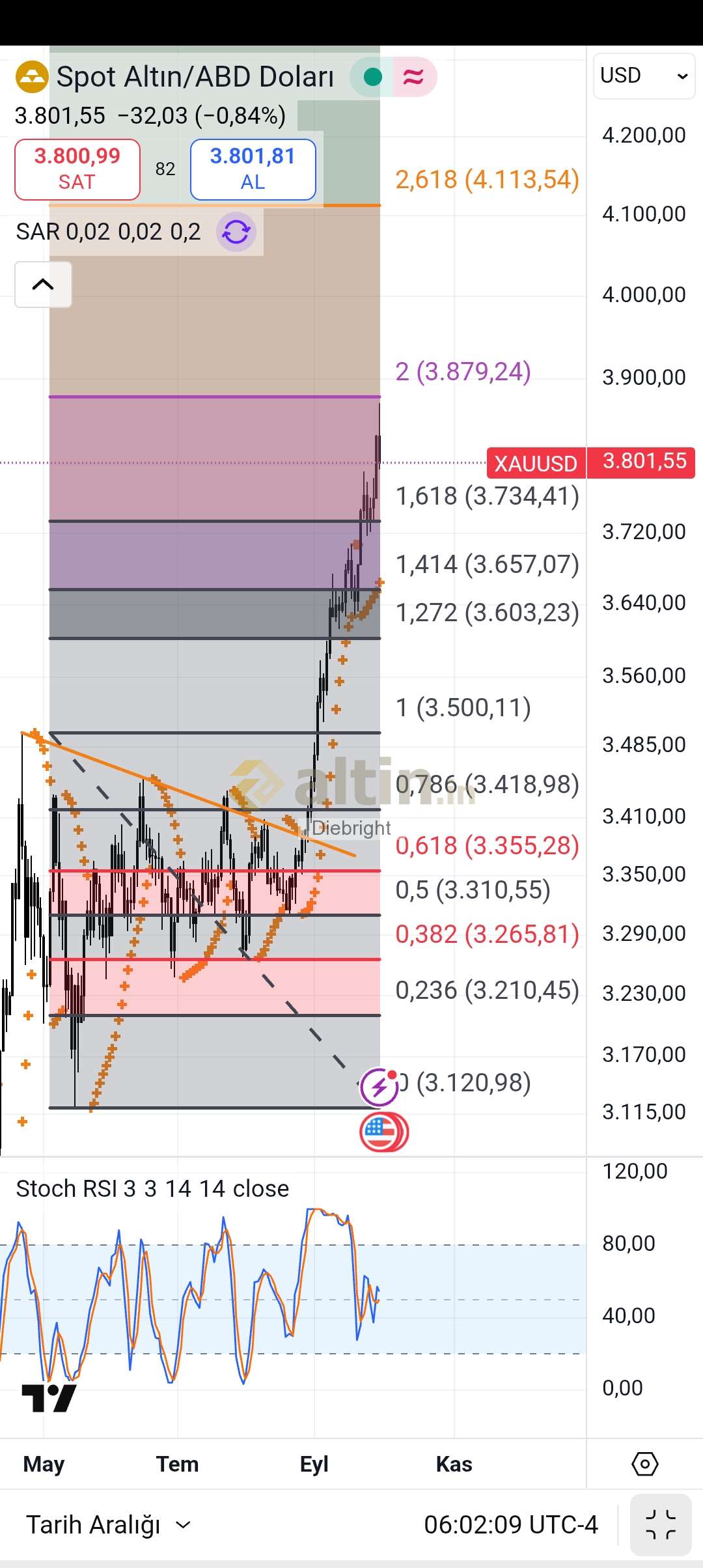 Talih_48 ()Hocam Bu grafik gösteriyor ki aşırı bir Altın a hücum var, Ben bu aşırı talebin gerçeklikle çok da uyumlu olmadığını ifade ediyorum. Daha da yükeselir mi yükselir. Şartlara bağlı ancak çukurun içindeki adam düşmez dağın zirvesindeki adam düşer. 3100 ile 3400 seviyesinde altın almış biri ile 3800 den altın almış kişinin riski aynı değildir.