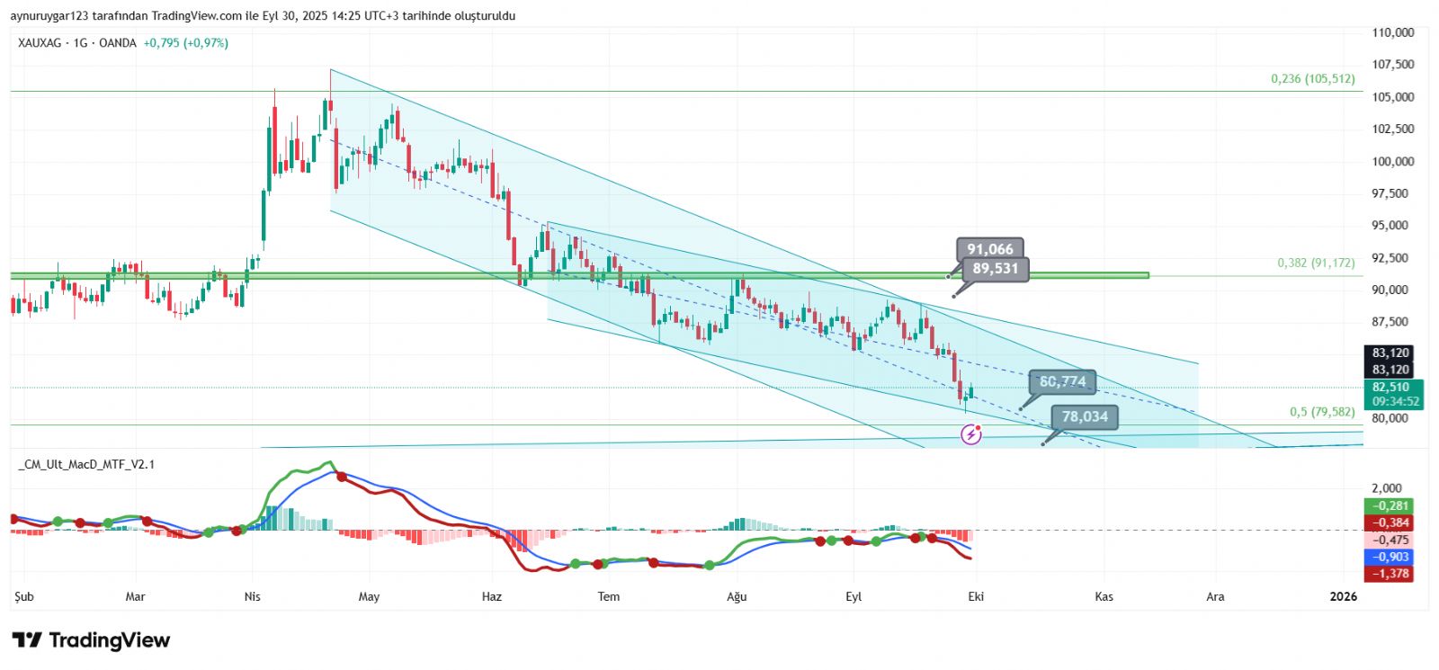 TUĞRA44 ()Farklı hatları izle bunda sorun yok ama düşen hattı daha üstte gösterip Altın da devam ediyor dersen ben buna itiraz ederim doğru değil çünkü