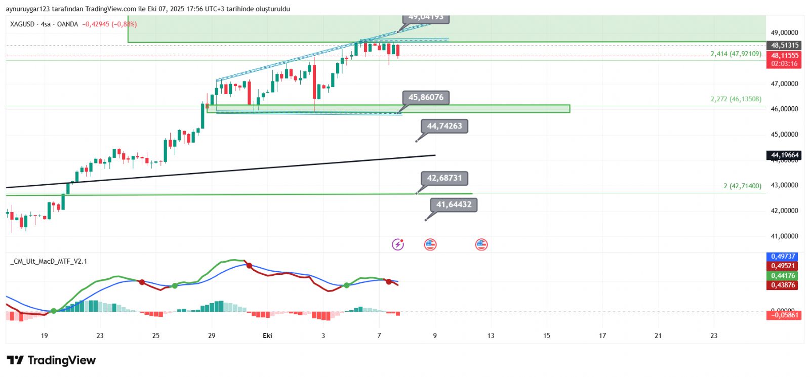 gümüşte az satış yiyip desteklerden yeni alıcı ile güç toplayıp 50 direncini kırmalı