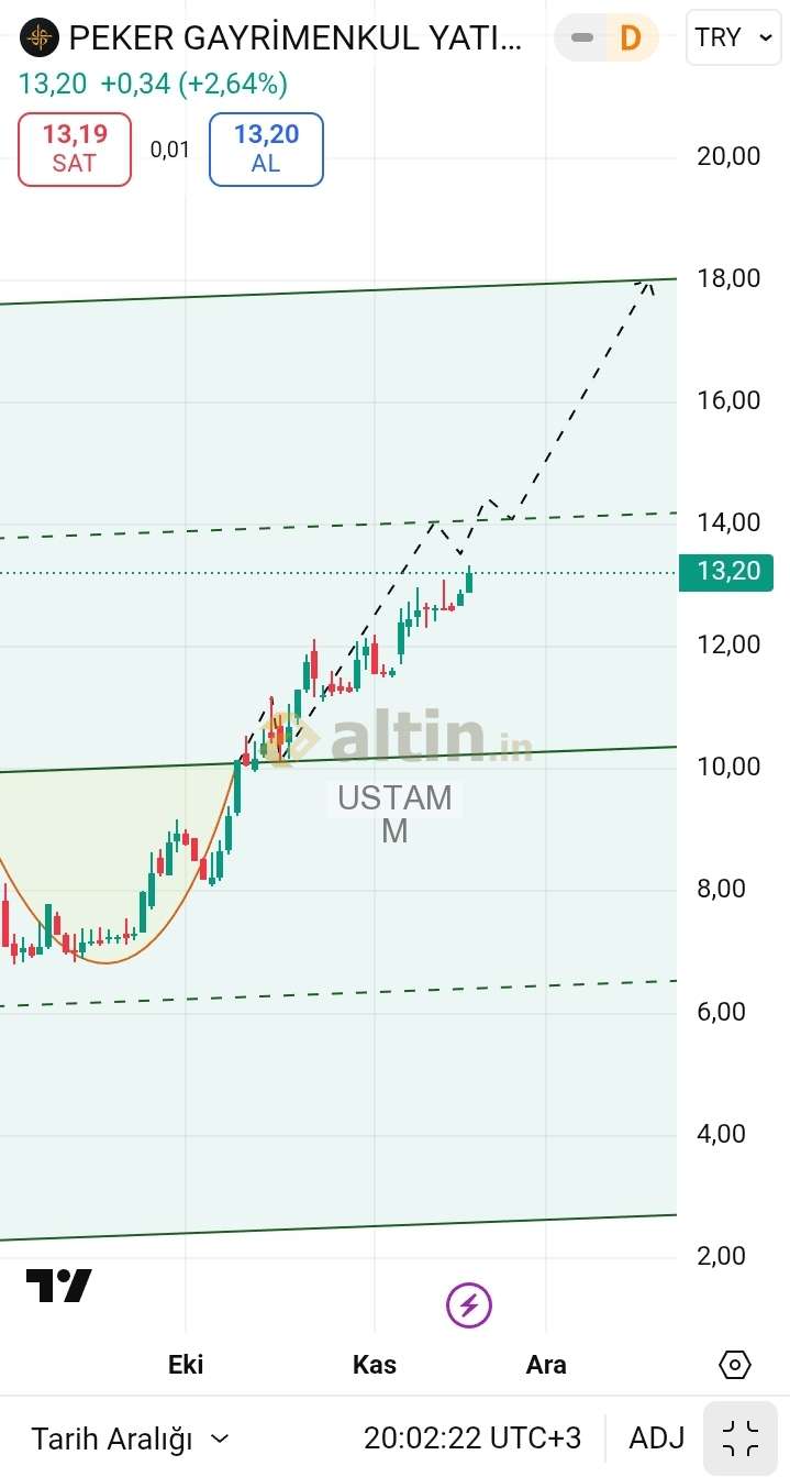 pekgy kanal orta çizgisi direncine geldi. Burada biraz oyalanıp kar satışları görülebilir. Şekildeki gibi bir hareket olabilir.