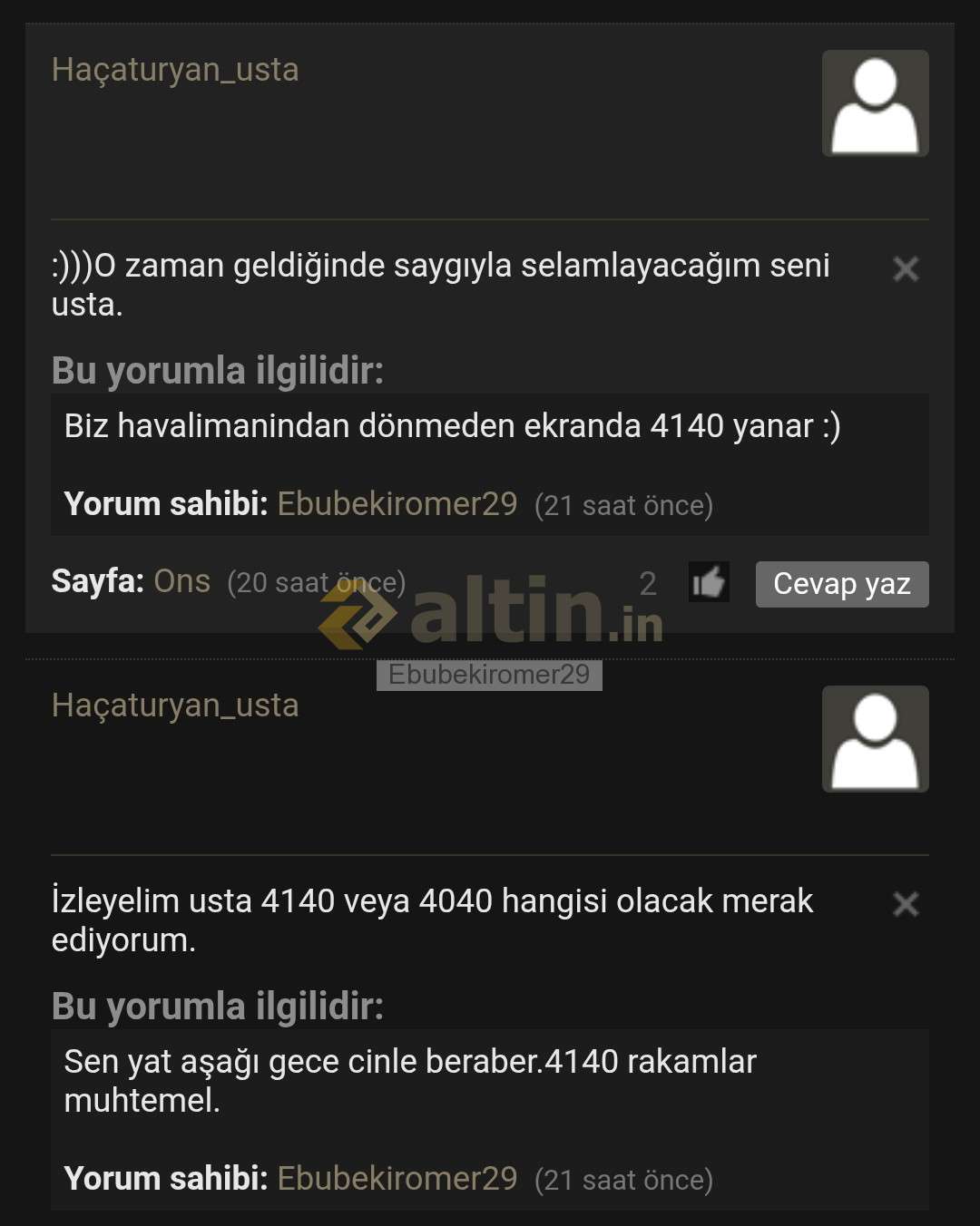 Ebubekiromer29 ()Eyvallah kardeşim. Bilmukabele. Aşağı 4100 4110 gibi rakamlar gelirse degerlendir bence. yari 4200 lere kafa atar diye tahmin ediyorum.