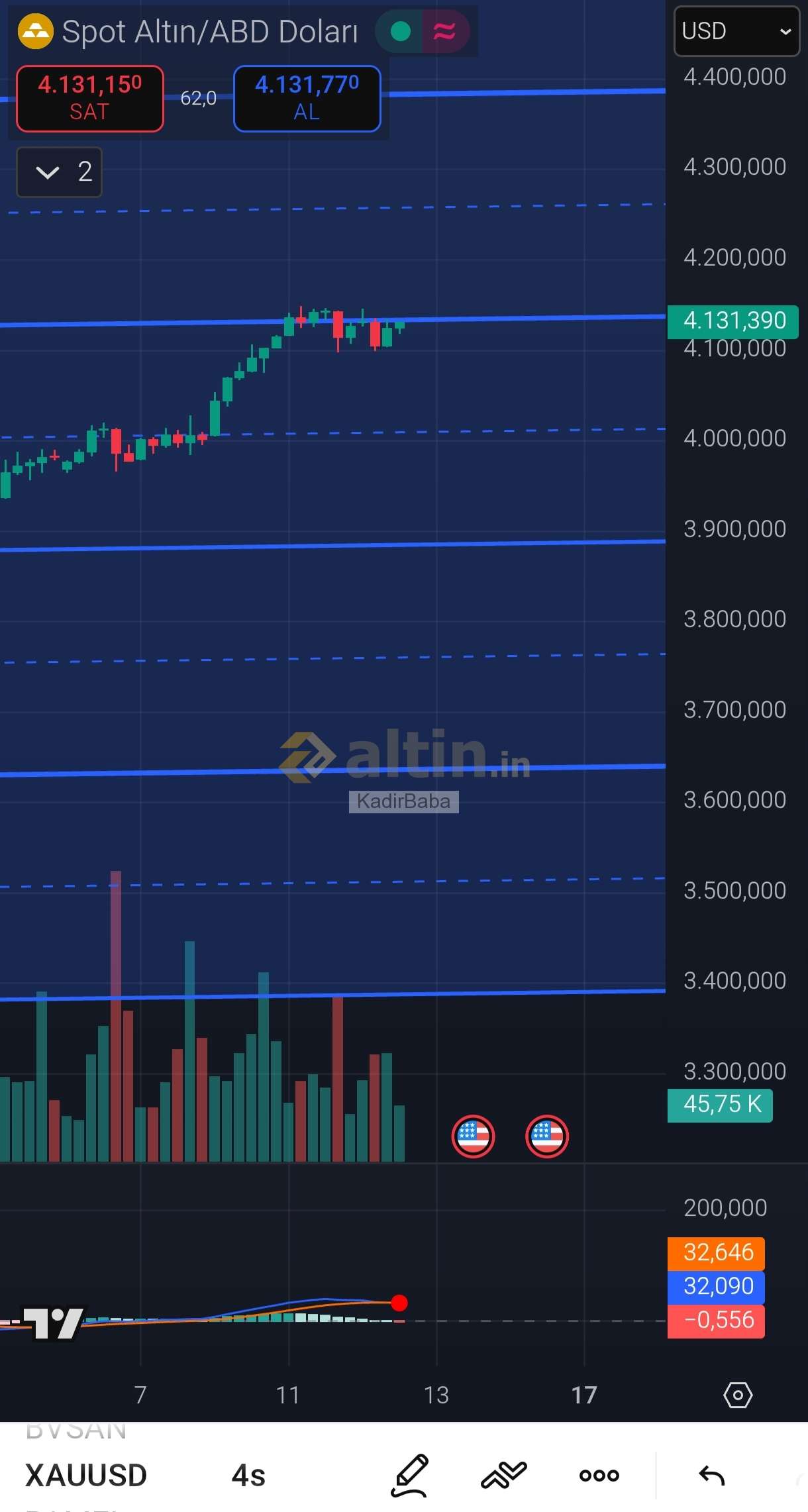 KadirBaba ()Allah razı olsun. 4130 üstü sağlamlaşması lazım yoksa aşağılarda 3850 seviyelerine kadar bir alan var.