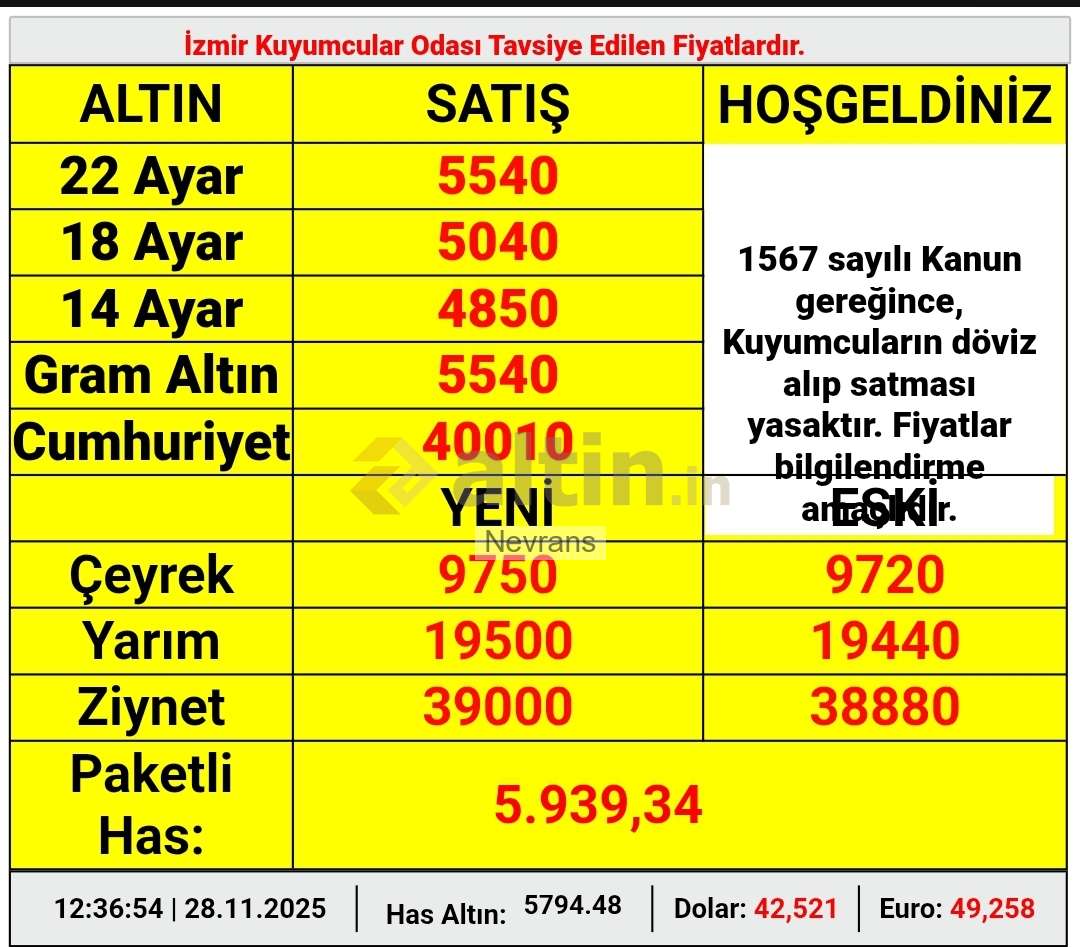 Nevrans ()Bizim izmir, de Altın alış satış fiyatları çok farklı.