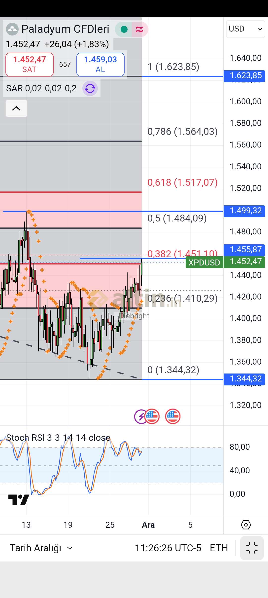 Grafikte de şu an 1455 usd görünüyor. Uyumlu gibi. Genelde benim grafik ile banka parite bakıyorum. Uyumlu olan grafiği seçiyorum.