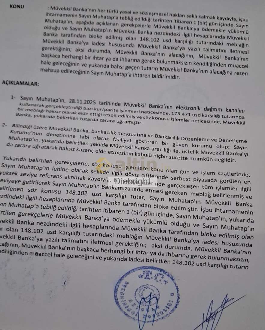 BJK__35__ ()Banka kurlarıyla al sat yapıldı kâr edilen parayı banka veri hatası nedeniyle haksız kazanç diye geri almaya çalışıyor.