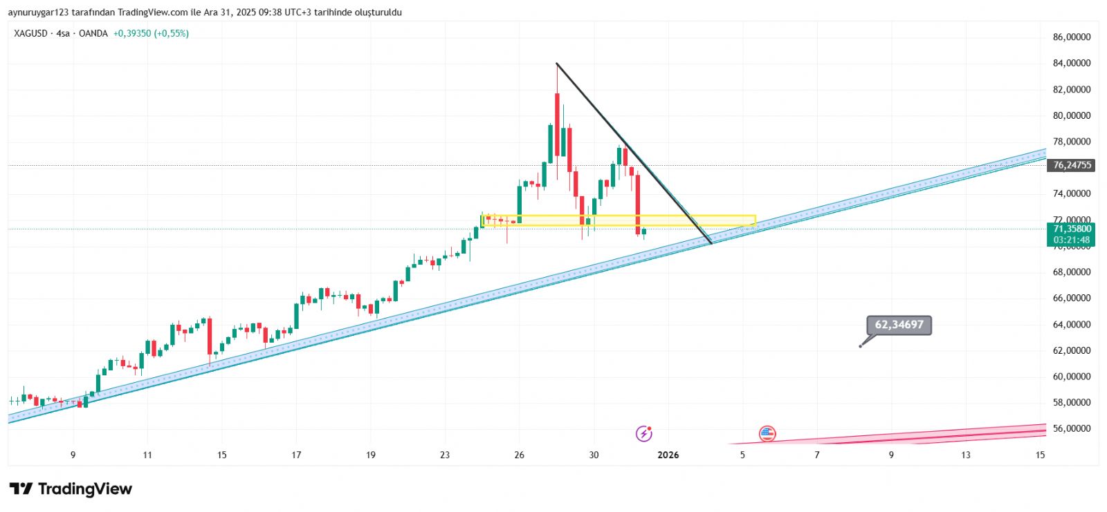 kalbi_Allah ()Benim. aslinda ogun yazmak istediğim Yarım kalmış sonradan farkettim subat sonu yükselişin hızlanacagi ay sonu olduğu için gumusu 75 üstü kapatmak istemediklerini ifade etmek istemiştim ben derin düşüşün daha zamanı var diye düşünüyorum