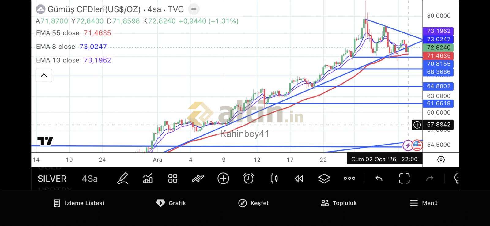 Kahinbey41 ()Uzun vadede yükseliş ama ben burdan bir düzeltme bekliyorum kademe kademe giriş giriş yerlerim