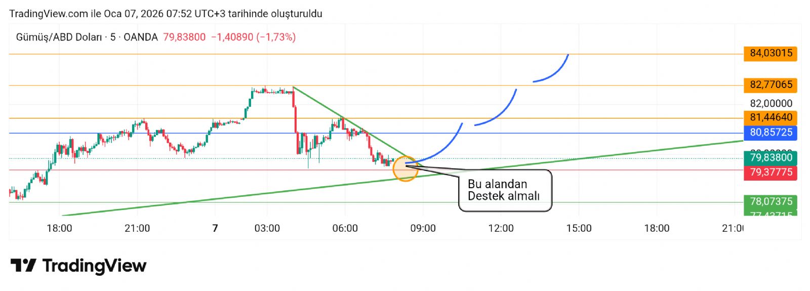 Hayalet_adam ()Buradan ret yedi 80.6 ile. Şuan anlık değer 79.70 civarıdır. 79.13 üstü Altın a düştüğü destek hattı anlık. Yatay destek 78.07 altta. Altına attığı hattın tekrar üzerine çıkmaya çalışıyor 79.13 civarının üzerinde kalıp 79.70 civarına baskı yapıp kırarsa hareketlenir.