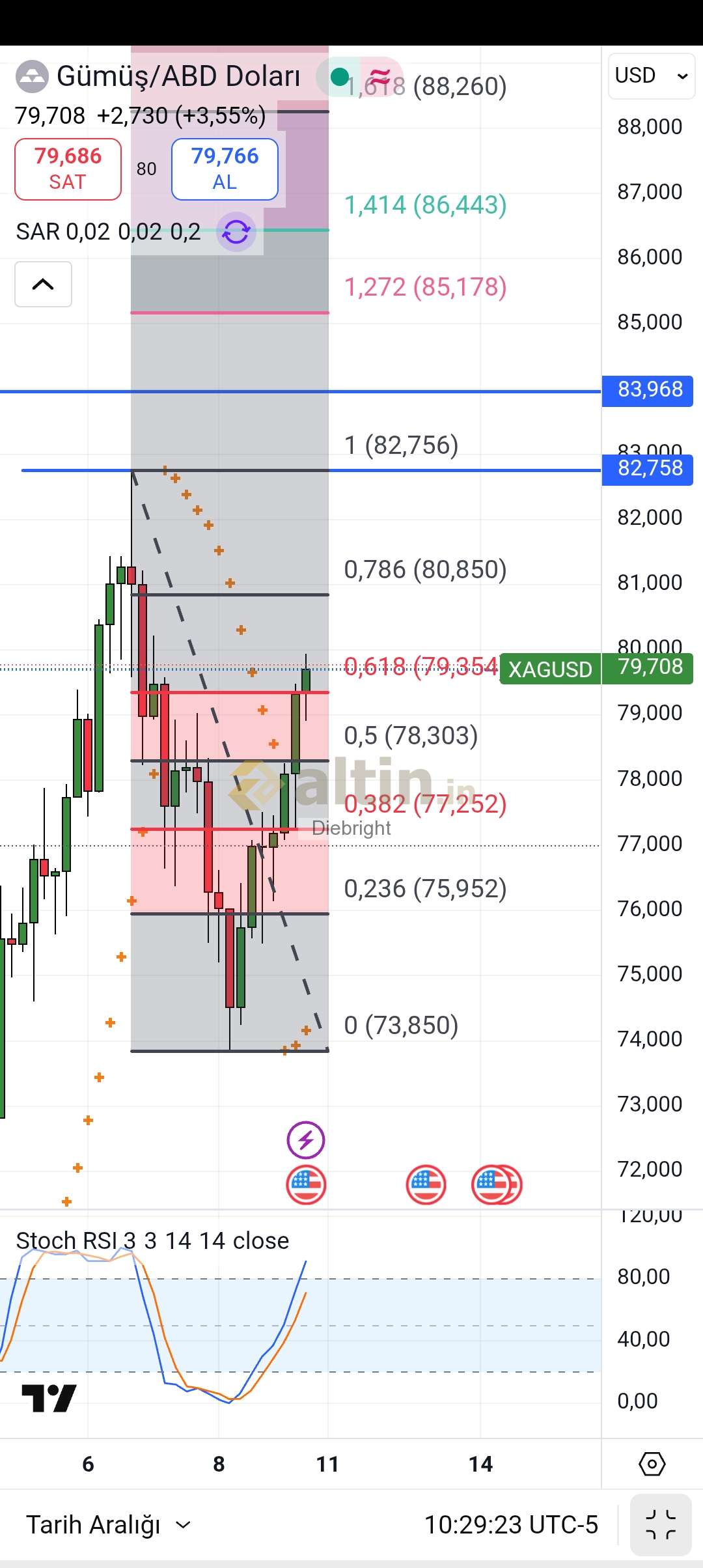 Diebright ()Eyvallah. Ne güzel al sat imkanları veriyor gümüş. 70-84 arasında bir yatay banttan kalırsa bu hareketi çok yapacak. Ta ki 70 dolar ı aşağı kırıp 56 dolara kadar ya da 84 doları yukarı kırıp 98 dolara gidene dek.