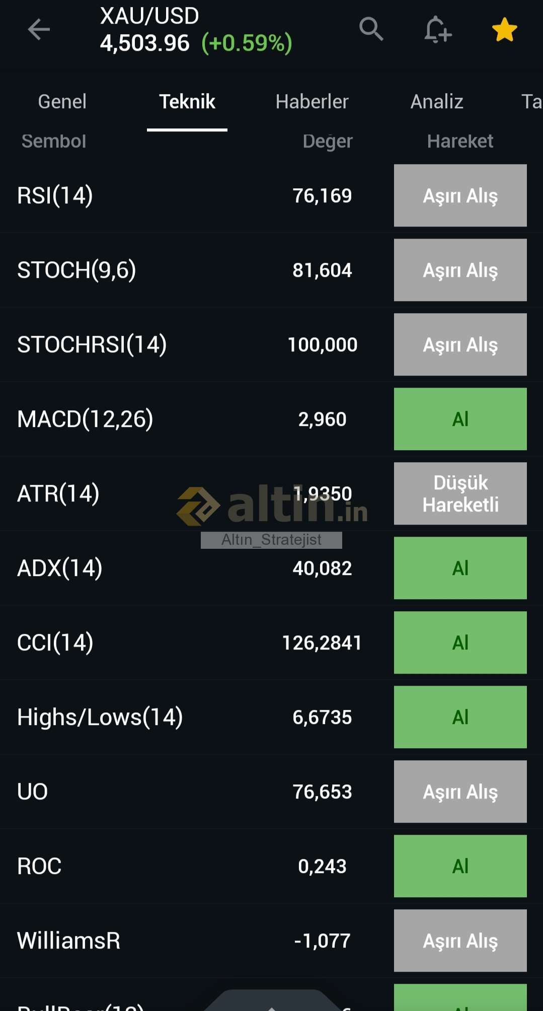 Altın_Stratejist ()Rsi 76 seviyede yüksek alım hacimli.