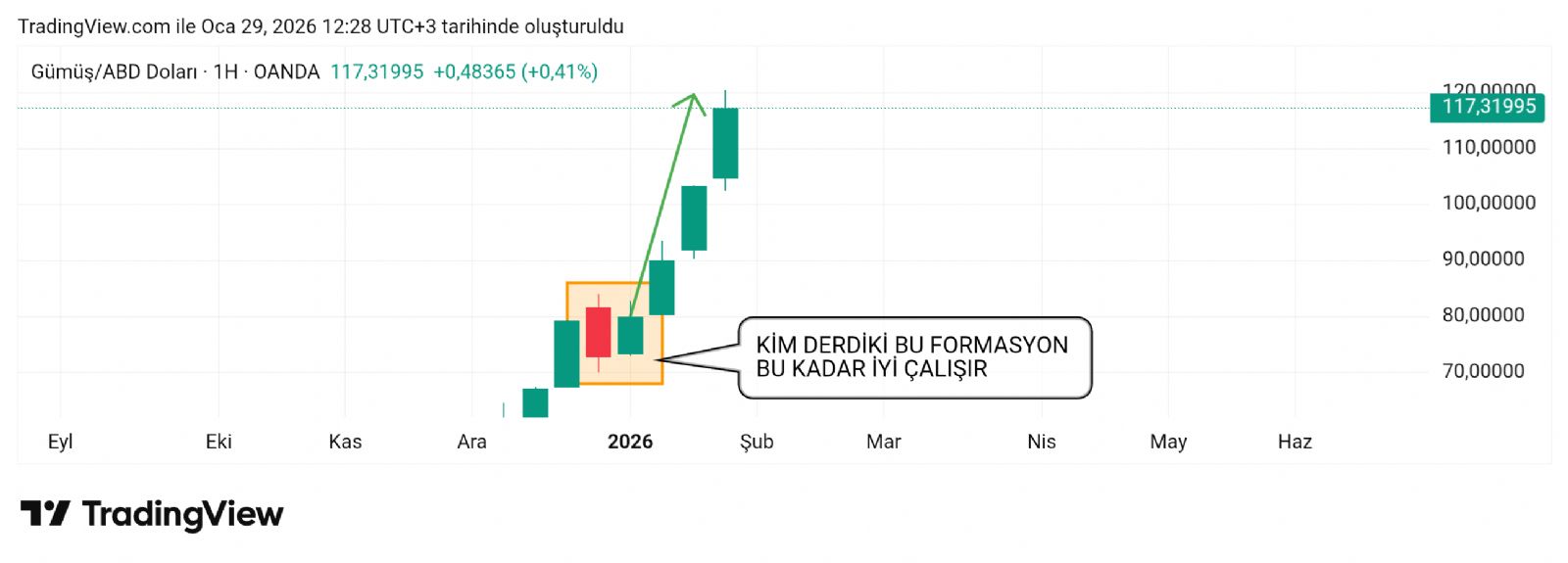 Hayalet_adam ()Bu formasyonu takibe aldım ama bu kadarda iyi çalışır diye bende tahmin edemedim tepede oluştuğu için. Hatta bana o ara dediler tepede oluştu çalışmaz diye. Bakın hamile boğa formasyonu nasılda on numara çalışmış.