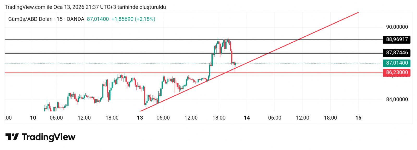 Hayalet_adam ()Trend üzerinde kalırsa eğer rasyo da düşen trend Altın da devam ederse 89 aşıp 90 değip geriye tekrar diye düşünüyorum. Önemli olan trend hatları şuan bana göre. Rasyo trend altında ons gümüş trend üstünde kaldıkça sorun yok.