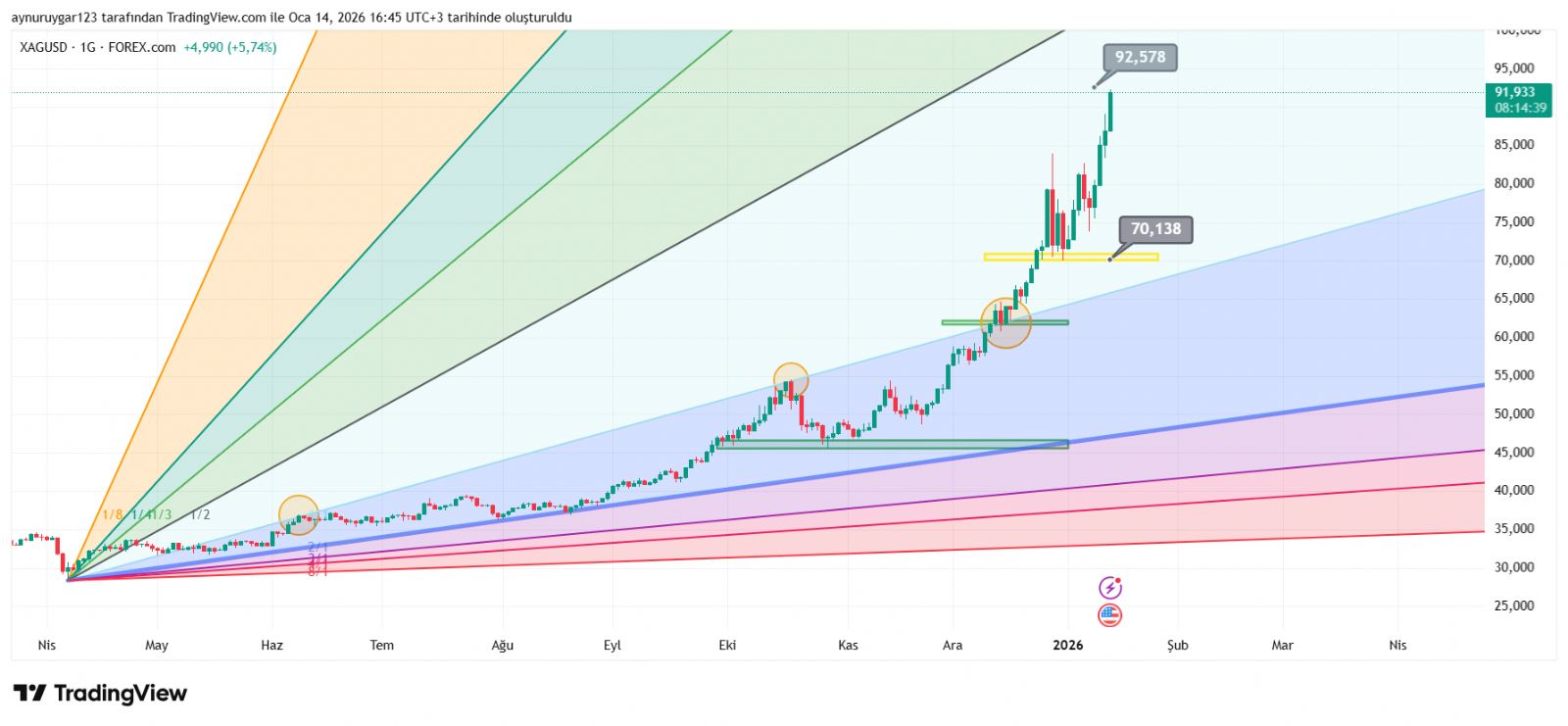 Altın_Stratejist ()Aynur hanım durmadan soluksuz çıkmış diyor sağlıklı değil diyor normalde bu tür yükselişler yukarıda 92 direnci var ondan sonra 95 hedefi gözüküyor