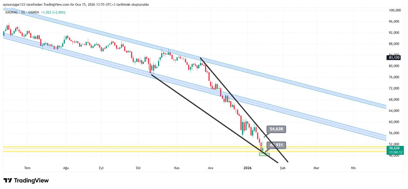 48 alçalan üçgen ve 4 saatlik destek idi .. artık 46 ünlük ve haftalıkta destek olmuş ...