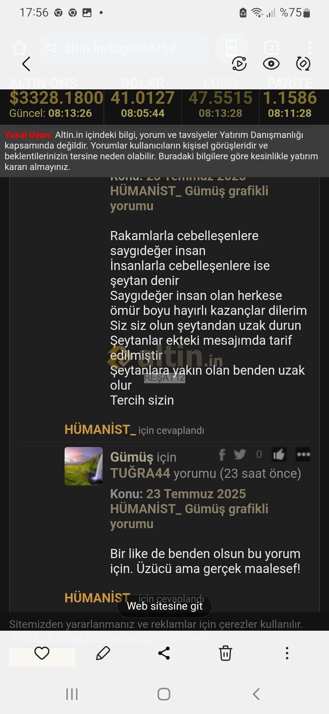 1) Altin.in'de yer alan içeriğin doğru ve/veya güncel olduğu hiçbir şekilde iddia veya garanti edilmemekte, hiçbir veri ve/veya paylaşım, yatırım danışmanlığı kapsamına girmemektedir. Sitenin içeriği referans alınarak yapılacak hiçbir işlemin doğuracağı maddi ve/veya manevi herhangi bir kayıptan altin.in sorumlu değildir. 2) Altin.in ziyaretiniz sırasında ip adresiniz ve bilgisayarınız aracılığıyla toplanabilen diğer veriler altin.in tarafından kayıt altında tutulmaktadır. 3) Altin.in tüm içeriği önceden uyarmaksızın değiştirme, kaldırma ve yenilerini ekleme hakkına sahiptir. 4) Altin.in gerekli gördüğü taktirde üyelerin ip numaralarını engelleme hakkına sahiptir. 5) Altin.in yorumlar bölümünde ki içerik, görsel, yorum ve paylaşımlar (tarafımızdan onaylanmaksızın) kullanıcılar tarafından kendi iradeleri ile paylaşılmaktadır. Bu içeriklerden dolayı doğabilecek hukuksal konulardan içeriği oluşturan kullanıcı sorumlu olacaktır. 6) Altin.in'in tüm kullanıcıları 5651 Sayılı Kanunun 8. ile 9. Maddesine ve TCK'nın 125. maddesine göre yaptıkları paylaşımlardan kendileri sorumludur. Bu bağlamda altin.in hukuksal haklarını saklı tutar. 7) Bu uyarılar önceden haber verilmeksizin değişkenlik gösterebilir takibi kullanıcılarımızın sorumluluğundadır.