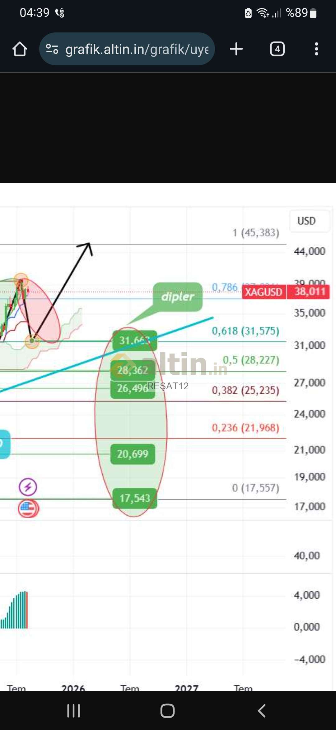REŞAT12 ()Piyasa acilmadan 38 dolar ın ustundeki gumüse kut diye 31 dolara inis gosterilmiş. Geri cekilmedigi gibi 93 dolara kadar gordü