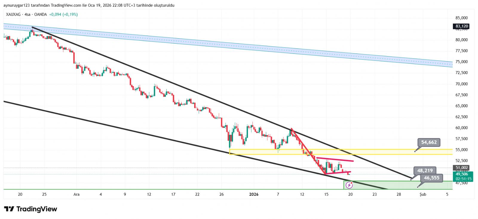 Altın_Stratejist ()Grafiğinde mevcut fiyat 49,506 civarında seyretmekte, yani destek bölgesine yakın ancak henüz kırılmamış durumda.