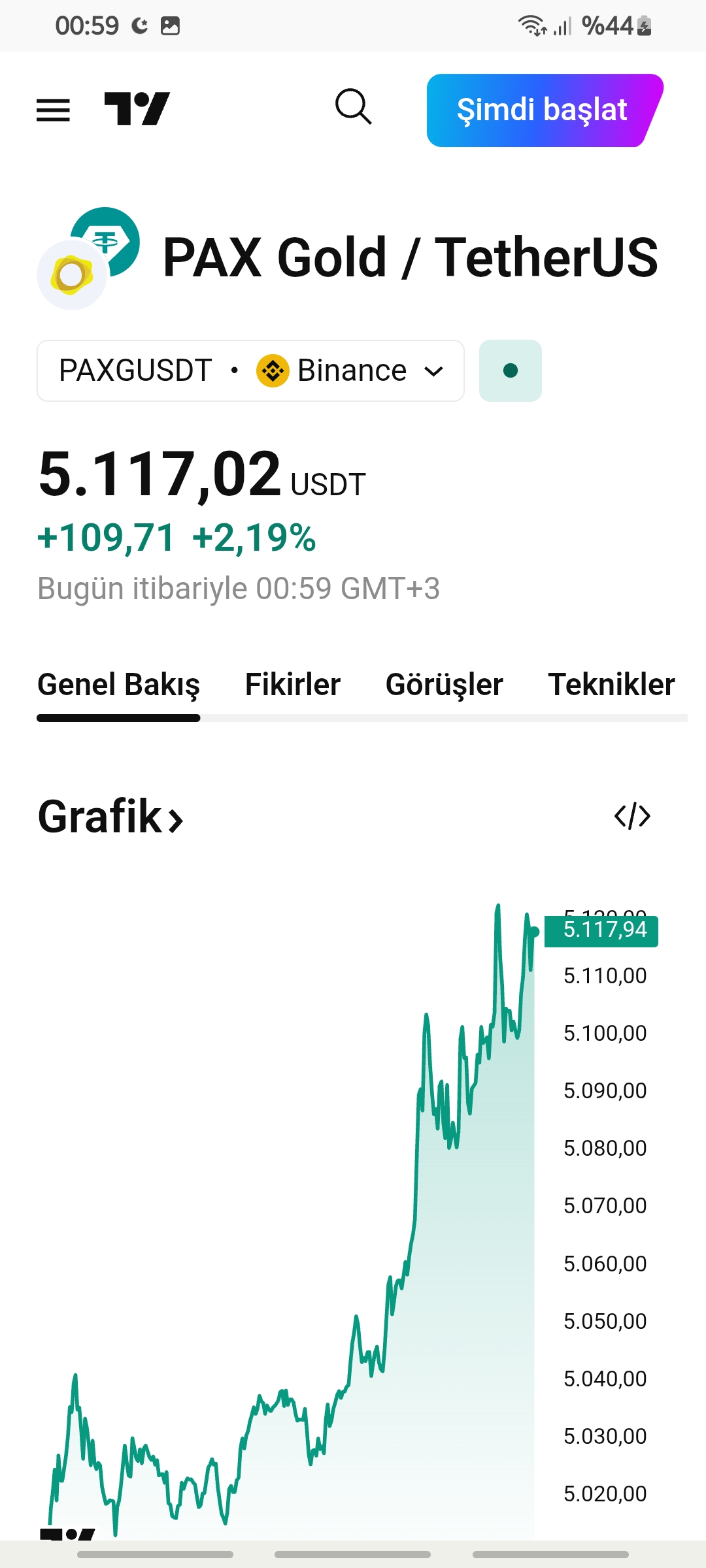 ht1976 ()Sayın abi şuan Altın vadeli işlemlerde spot 5030 da gözüküyor... biraz düşme var... benim iki bankadan işlem yapıyorum... şuan FIBA da aşırı makas var... Dünya'dan yarın gece 02de den önce almaya çalışırim yüksek gapli açması muhtemelen olduğu zaman alırım... altın ons fiyatı baktıktan sonra tabiki...