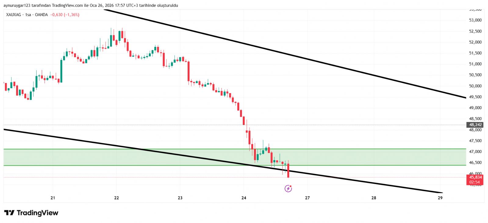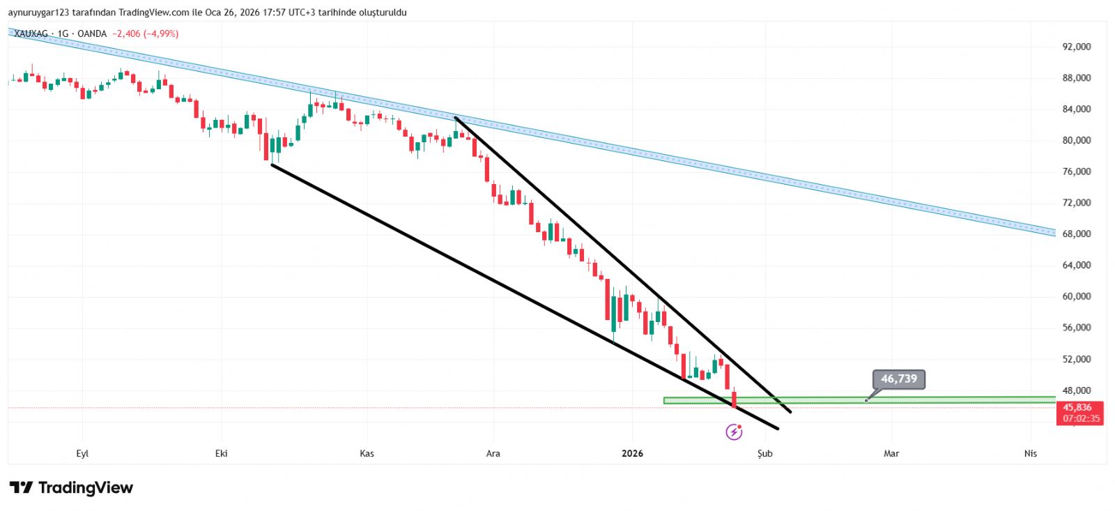 Aynur1 ()çok belirgin bir alçalan üçgen .. yukarı kırıp tepki yükseliş gelmesi gerekir di .. aşağı kırılıyor . bunlar normal değil