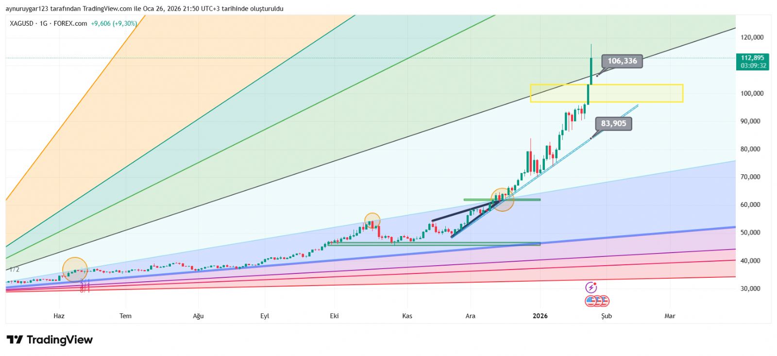 Aynur1 ()burada beyaz bölgeden yeşil acıya geçiş yaptı ..106 kırılmadığı süreçe yeşil alan tepesine gidebilir .. ytd