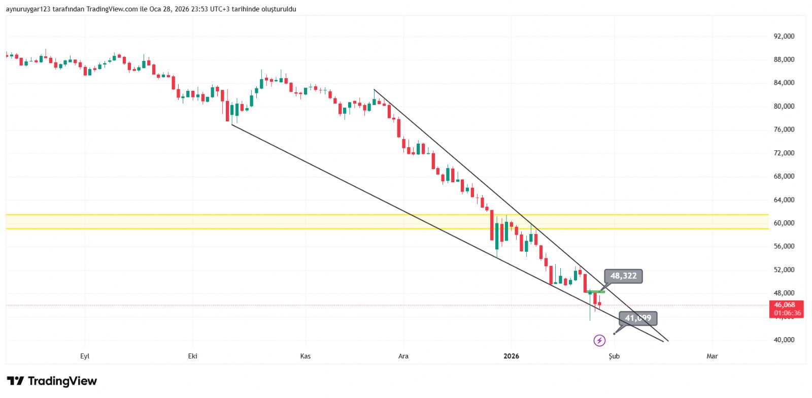 Aynur1 ()şubat ayı ay içinde 47 dolar yükselen aylık mumun verdiğinden geri alması nodmal