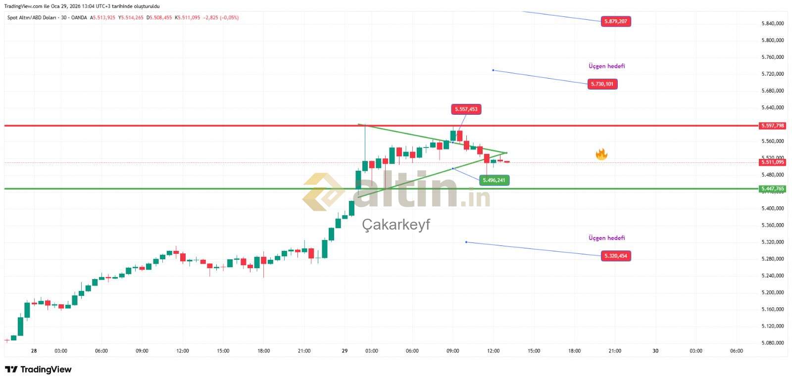 Çakarkeyf ()Grafikte üçgenin alttan gelen trend cizgisinin başladığı yerin Altın dakı muma bakarmısın