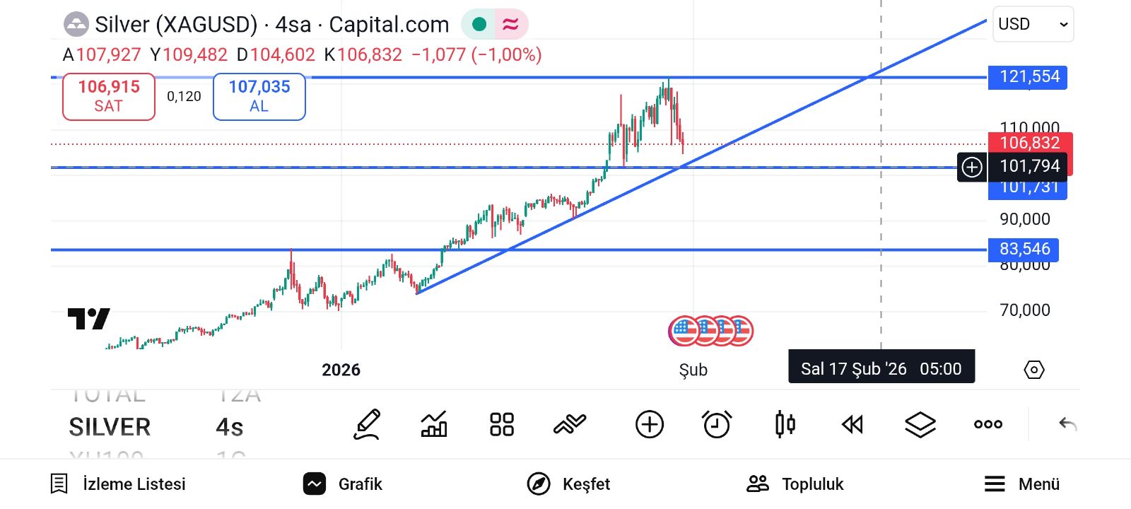 Bence gümüş 100 120 dolar arasında çok al sat fırsatı verecektir