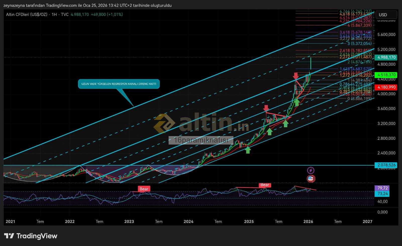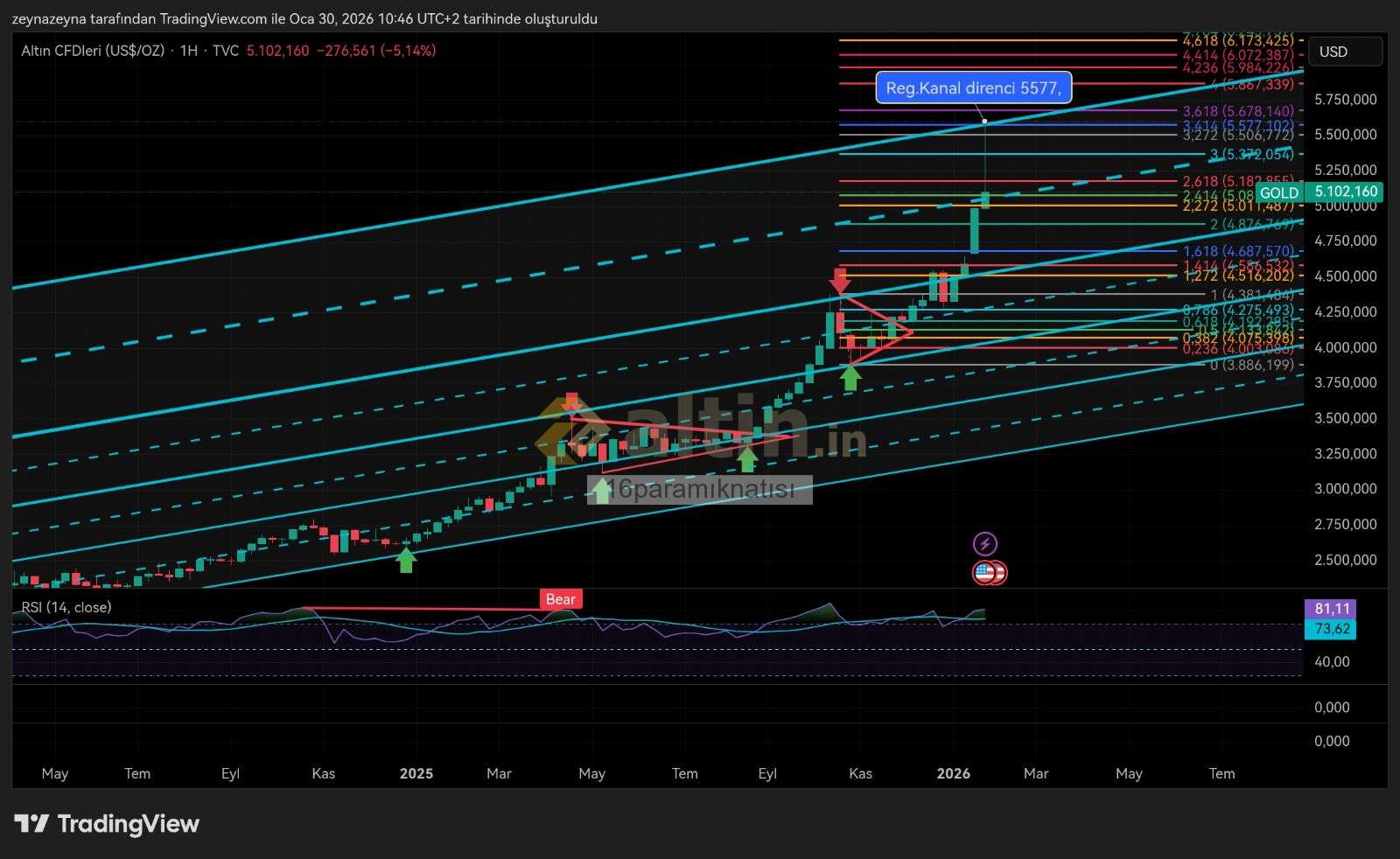 16paramıknatısı ()Nezaketiz için Çok Teşk. ederim n Ons altın için dünde aynı yorumu yazmıştım 21 Nisan 2025 de sayfada linçlemişlerdi yılmadım:) yeni regresyon kanalına 4516 onsda Ath yapacak kanal katlarsak tavşan gibi koşacak dediğimde de kimse inanmamıştı işte ortlamalrdan hızla uzaklaşıp hedefler tavşan hızıyla gelince tecrübe bir kez daha yaşandı malesef ve teknik çalıştı;