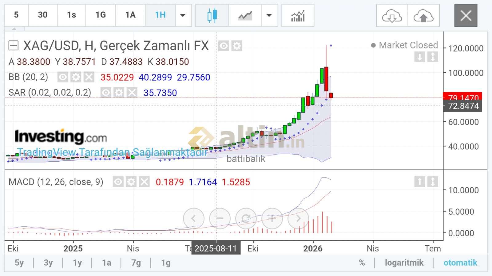battıbalık ()Asya açılışı ile hacim gelmezse düşer. Tepki alımı gelirse bu yükseliş hacim arttırır. Aksi halde tekrar aşağı yapabilir. 70 ve 68 de güçlü destek var. Geri dönüş sağlanırsa hacim hızla artar.