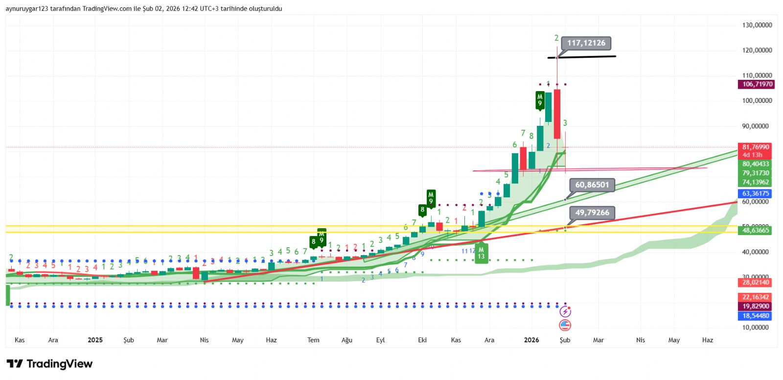 Eğer 80 alti haftalık kapanış olursa bu iş uzar . aylar değil yıllar kalırız...