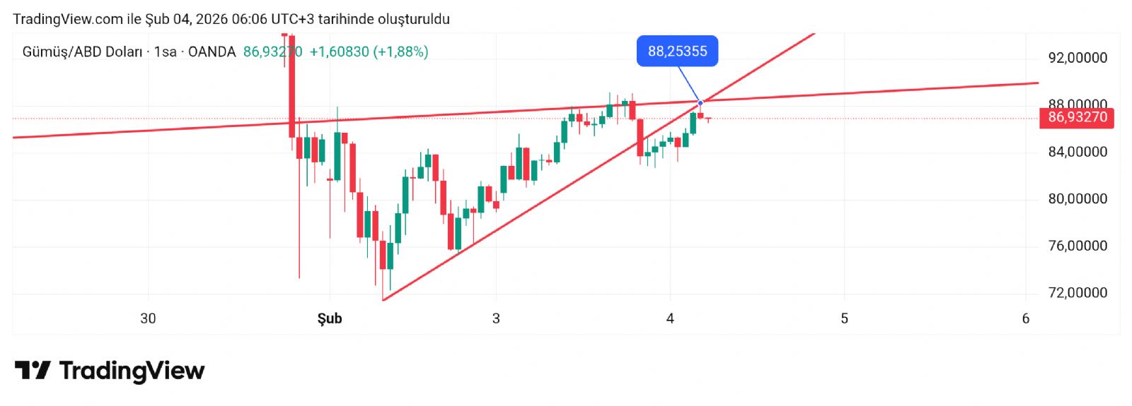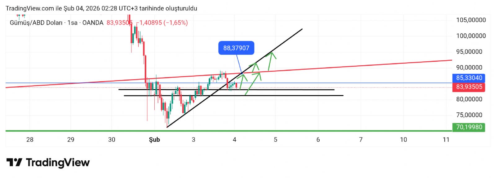 Hayalet_adam ()Direnç hattına çok yoğun bir baskı var tahmin ettiğim gibi 75 sonrası ama henüz kırmış değil çok zorluyor burası. İnşAllah atar üstüne.