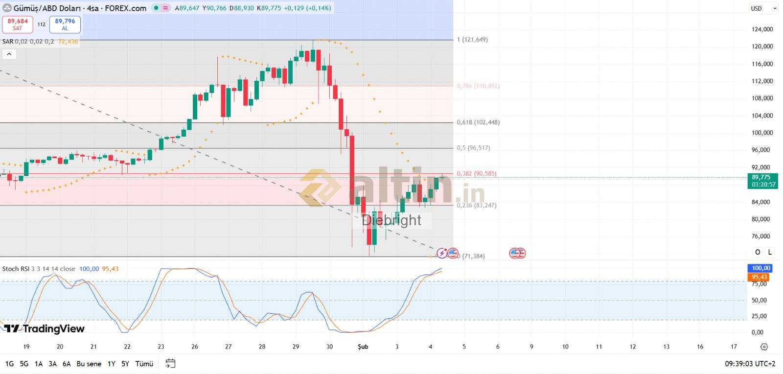 Diebright ()4 saatlik tepede belki geri çekilir ancak bu haliyle 90.58 usd üzeri kaldıkça fiyat 96.52 usdye ulaşmak ister.