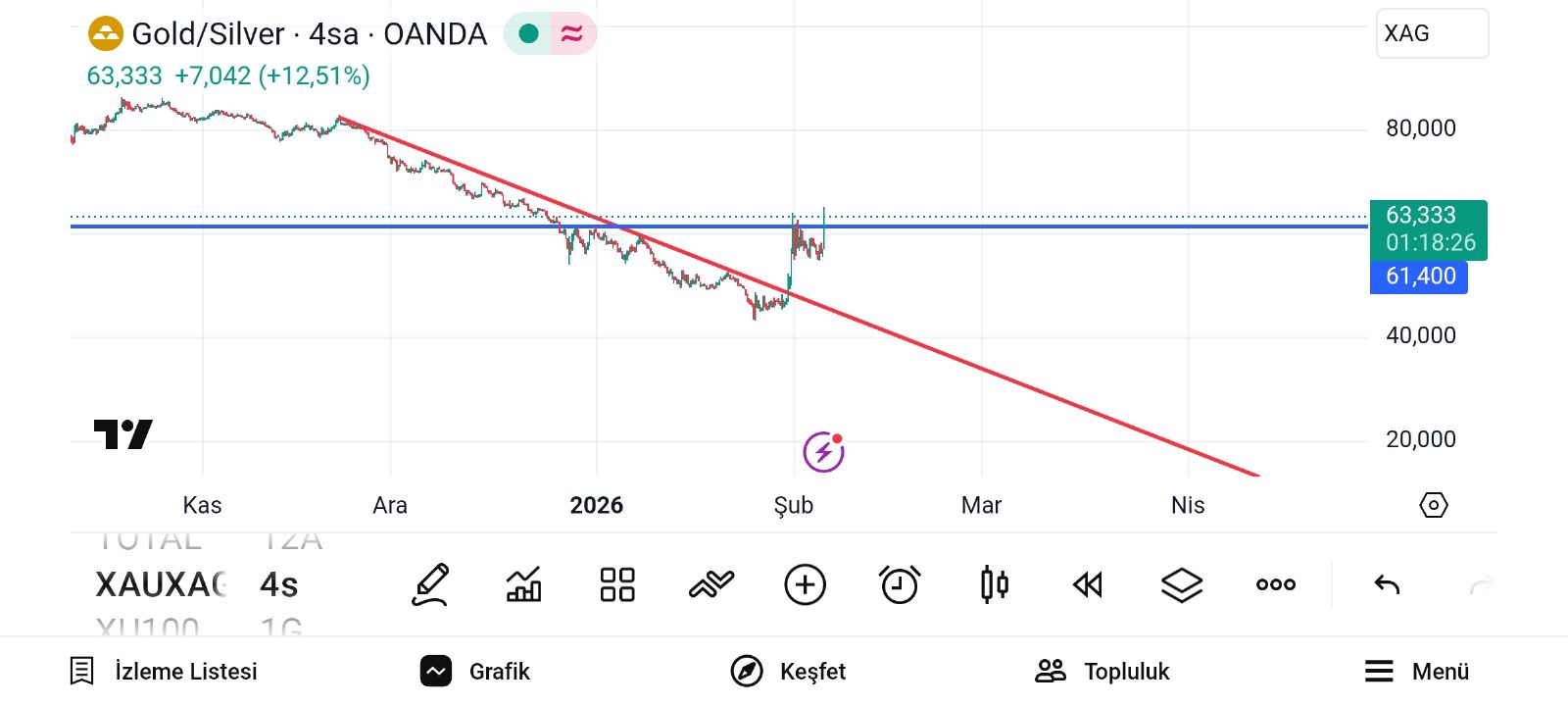 70 bölgesini test ettiği sırada Rasyo daha da yükselebilir
