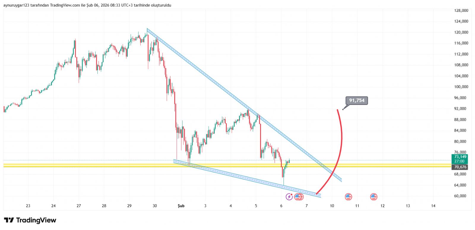 Alçalan takoz yükseliş habercisidir. Takoz üstü kapanış gerekiyor. Bu hacmi arttırır yükseliş başlar teyidi gelir. %47 düşen bir ürün dip yapmış olması gerekir trend değişimi olmayacaksa. Haftaya kırmızı mum olursa trend buzulumu olur. Önümüzdeki hafta takoz Kırılımı yapacaktır. Düştük düştük sonuna geldik. Sıra yükselişte