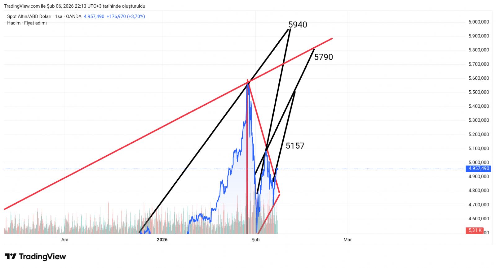DavutDavut ()hedefi yükseltin demek kardeşim. böyle vinç gibi çizmişsin tepeleri. 5900 rakkamlar demek. adamlar bize rakkam verdikçe tahammül edemiyorlar zaten.
