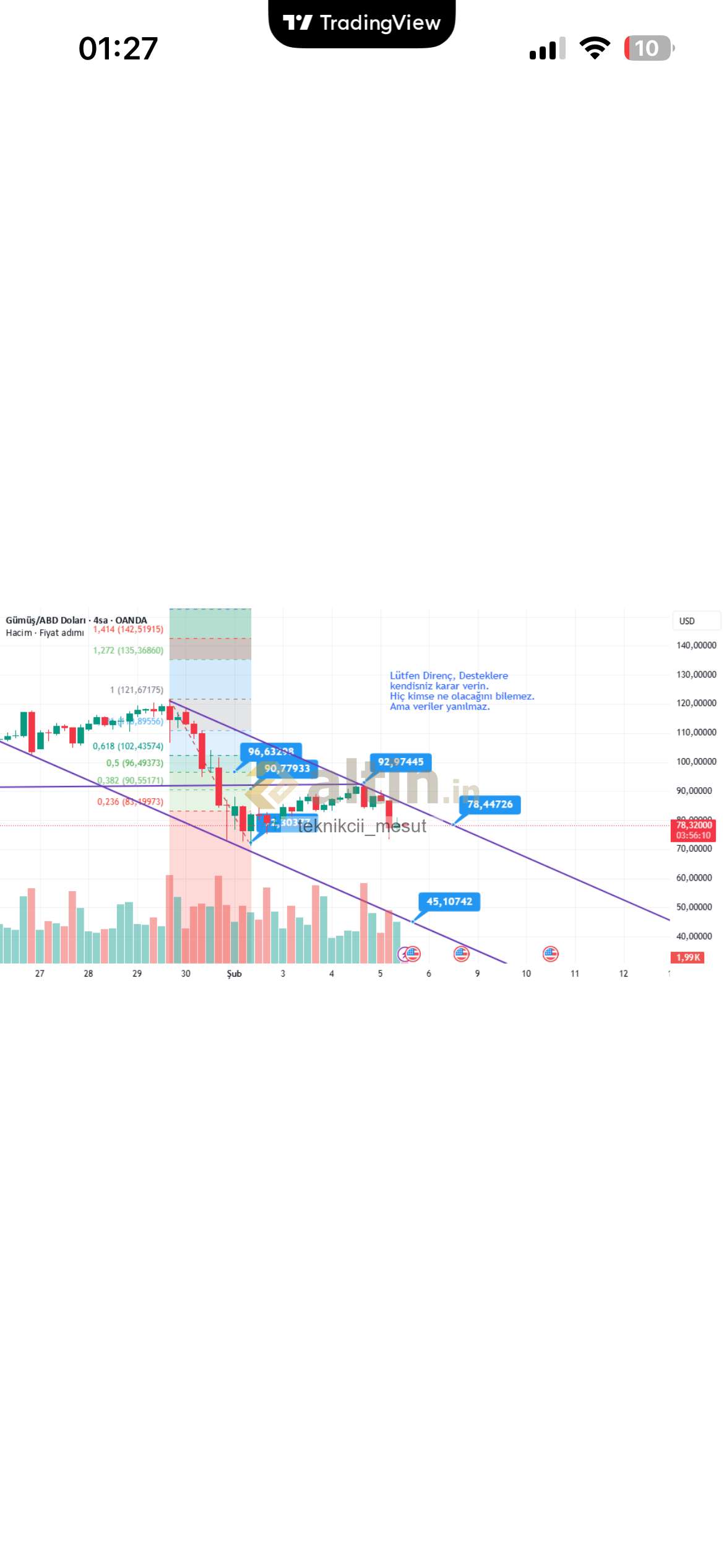 2 ons altını n durumu. Bu iki duruma ve yine bazı teknik durumlara göre ons gümüşü 45 lere falan çekecek bir durum bana göre şuan zor gibi görünüyor.