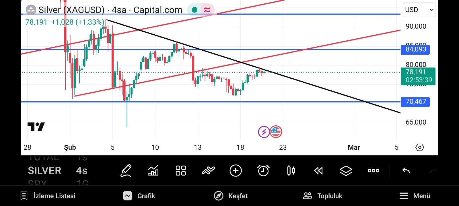 Tekrar aşşağı destekleyen gider 70 bölgesini kaybederse 64.50 de soluğu alır