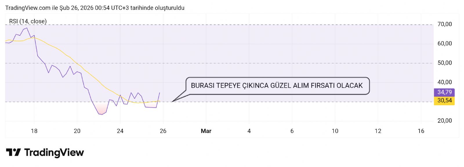 Hayalet_adam ()4saatlik grafiğin rsi sinyali kardeşim. Tepeye çıkınca güzel alım fırsatı olacak ons gümüş tarafı için. Şuan diplerde oyalanma sonrası önce orta banta sonra tepeye çıkış o ara alım sonra burası dibe ininceye kadar sabır sonra burası dip gümüş şutingen. :)