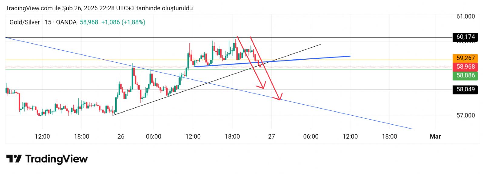 Hayalet_adam ()Grafiğe bakın nereden geriye inmiş. 60 geçseydi o zaman 62-63 arasına gidecek ti yine geriye inecekti. İlk noktada takıldı. Ons gümüş karşılığı 86 idi.