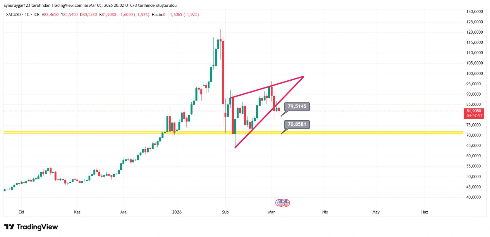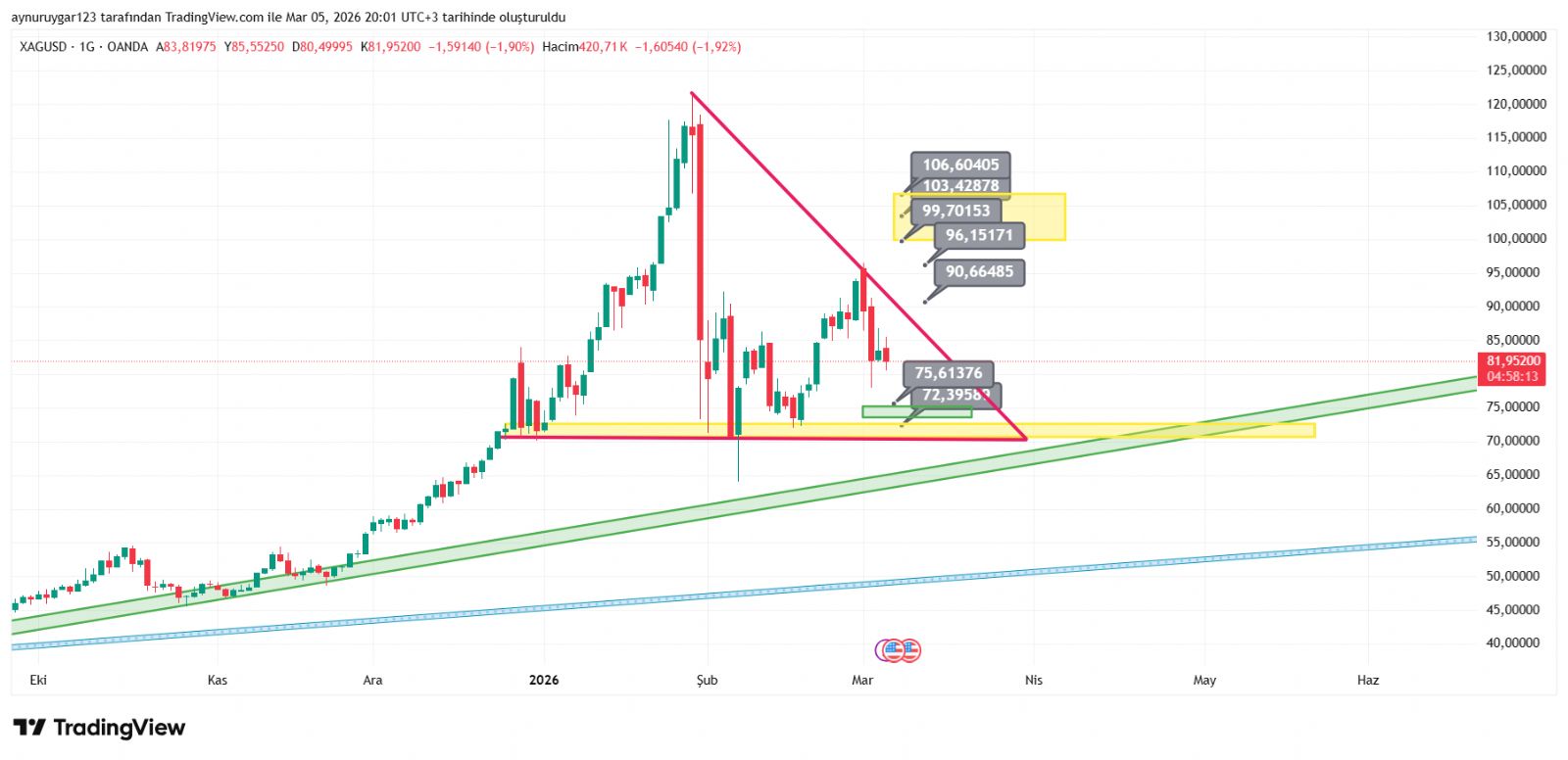 Kurtdere ()Son grafik yorumundan bunlarımı anlamalıyız... Güçlü Destek (Alım Bölgesi): 77,54 seviyesi. Bu seviye hem yatay destek hem de yükselen ana trendin (siyah çizgi) kesişim noktasıdır. Buranın aşağı kırılması stop- loss (zarar kes) gerektirebilir.