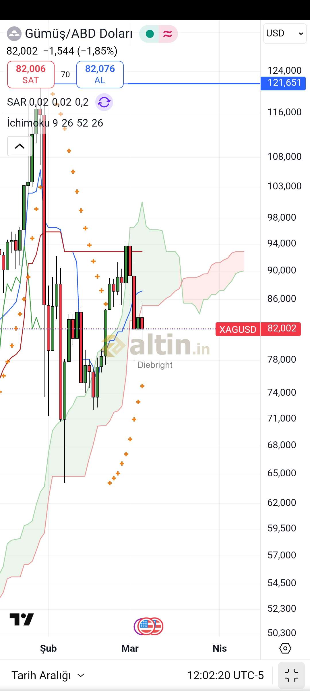 Diebright ()Şimdilik 79 usd civarında. Ancak her 4 saatlik kapanış sonrasi değişiyor.