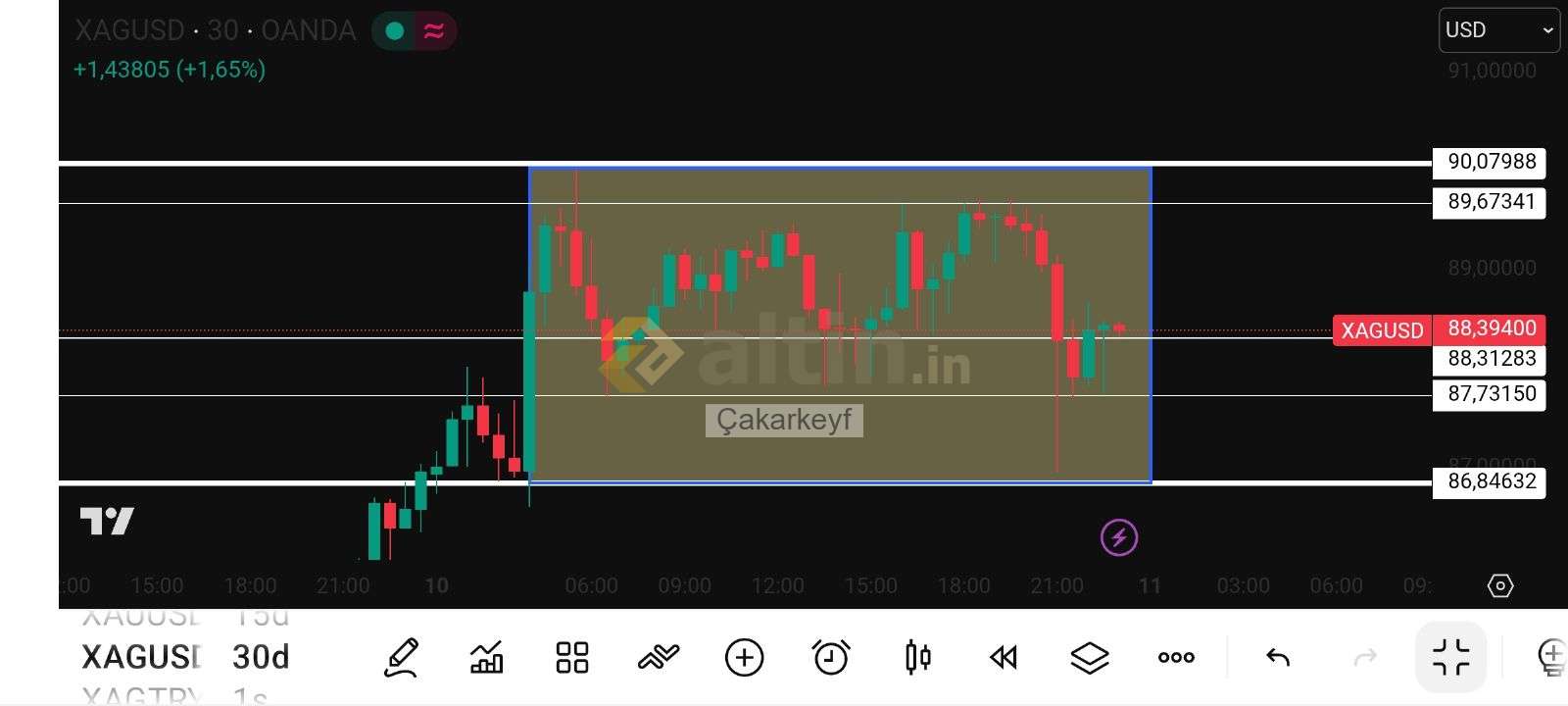 Çakarkeyf ()Aşağıda 86 usd yukarıda 90 USD aralığında hareket ediyor,90 kırılmadan yükselişler suni kalır