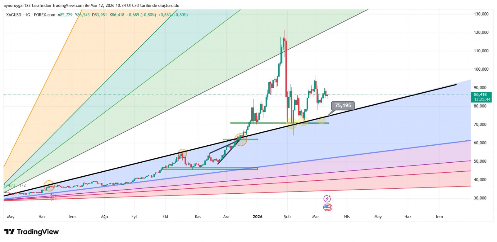 75 ile 121 gözüküyor alan destek direnç .. amma bu zamanla değişir.