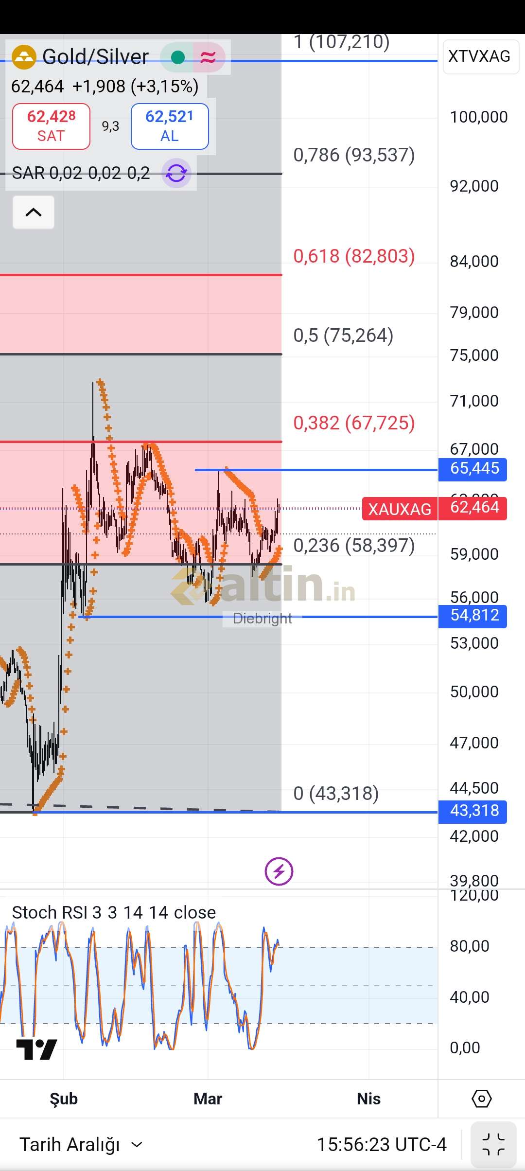 Diebright ()Doğrudur. Biz 78 usd den bir ikili dip bekliyorken bir alttaki dip olan 72 usdye gidecek gibi yapar ama değerlerden 74-75 usd gibi cevirebilirler. Piyasa sever korku vermeyi ve oyalamayı. Rasyo gecen 67.72 değerine çok yaklaştı. Asabilse 75 değerine kadar gider gümüş ve Altın da çok alt değerler görürdük. Abartıp 67.72 yaparlar mı bilmek zor. Şahsi düşüncem ise yapmazlar yönünde. 65.5 yakınından dönüş alabilir. Rasyo ve ons göstergeleri birbirine orantılı. Birinin aşırı alım diğerlerinin de aşırı satışı yaklaşıyor. Bu durumda her zaman güzel bir tepki oluşur. Yakalayabilecek miyiz bakalım.