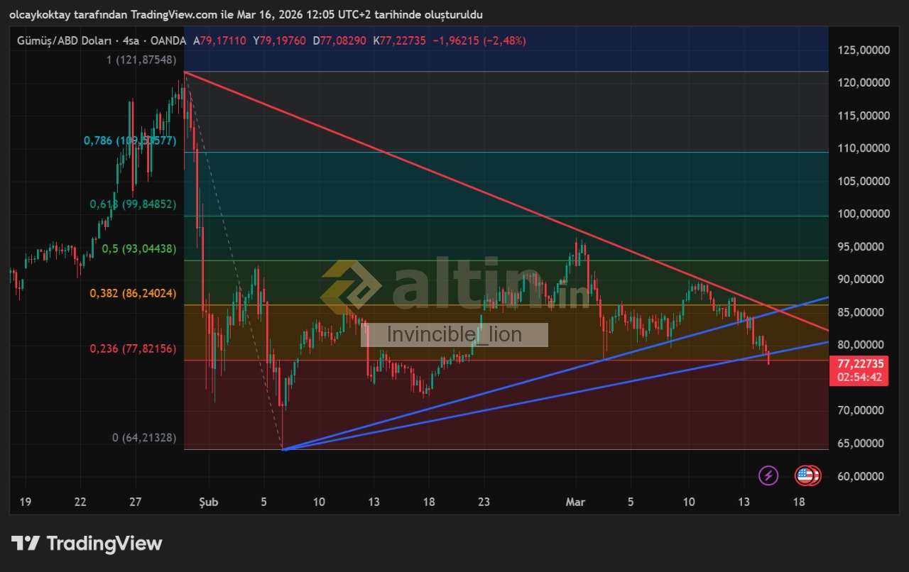 Invincible_lion ()77.82 bölgesini takip ediyorum bu seviyenin Altın da kalması durumunda alt band 73.00 71.00 seviyelerini ziyaret edebilir
