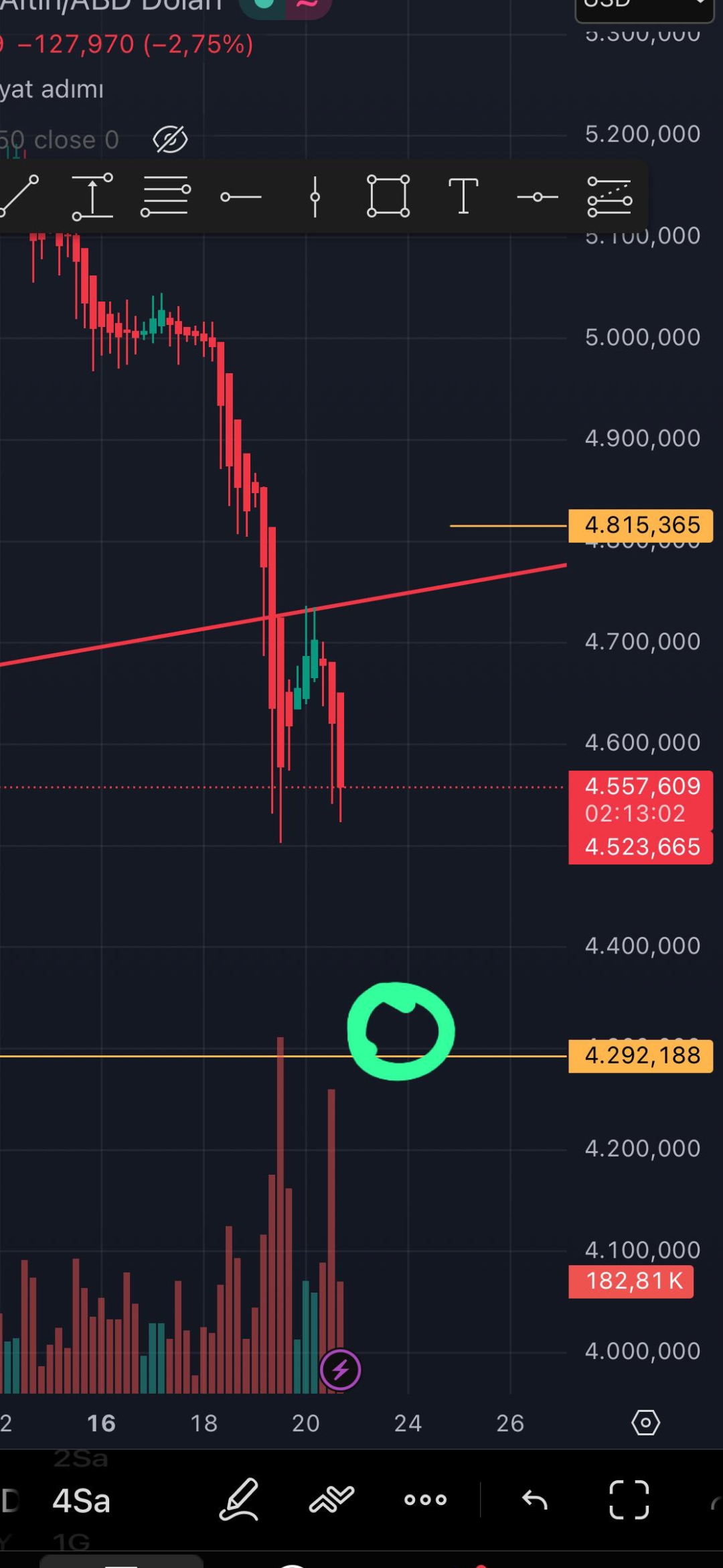 murgo ()Hocam dip 4055-4068. Yani burası öyle bir dip ki kırabileceğini sanmıyorum. Olmaz da diyemez kimse ama burası kırılırsa dünyada ticari dengeler değişir.