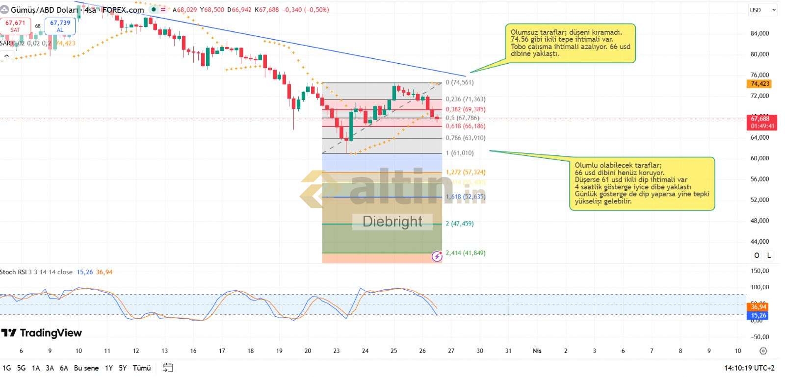 Diebright ()altın onsun normalde biraz daha düşmesi lazım. 4350-4291 usd kademelerine belki de. Gümüşe göre 4 saatlik dip yapmaktan biraz daha uzak.