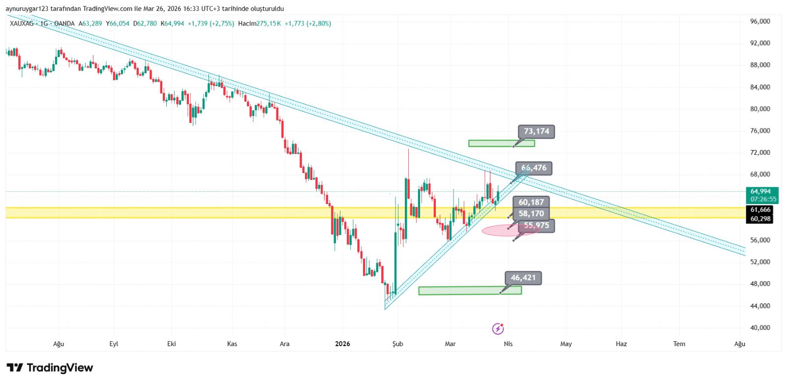 Aynur1 ()55..56 ye bir gelse rasyo gümüşte 77..81 e tepki yükseliş yapsa diye umudum vardı . onu da yapmiyor