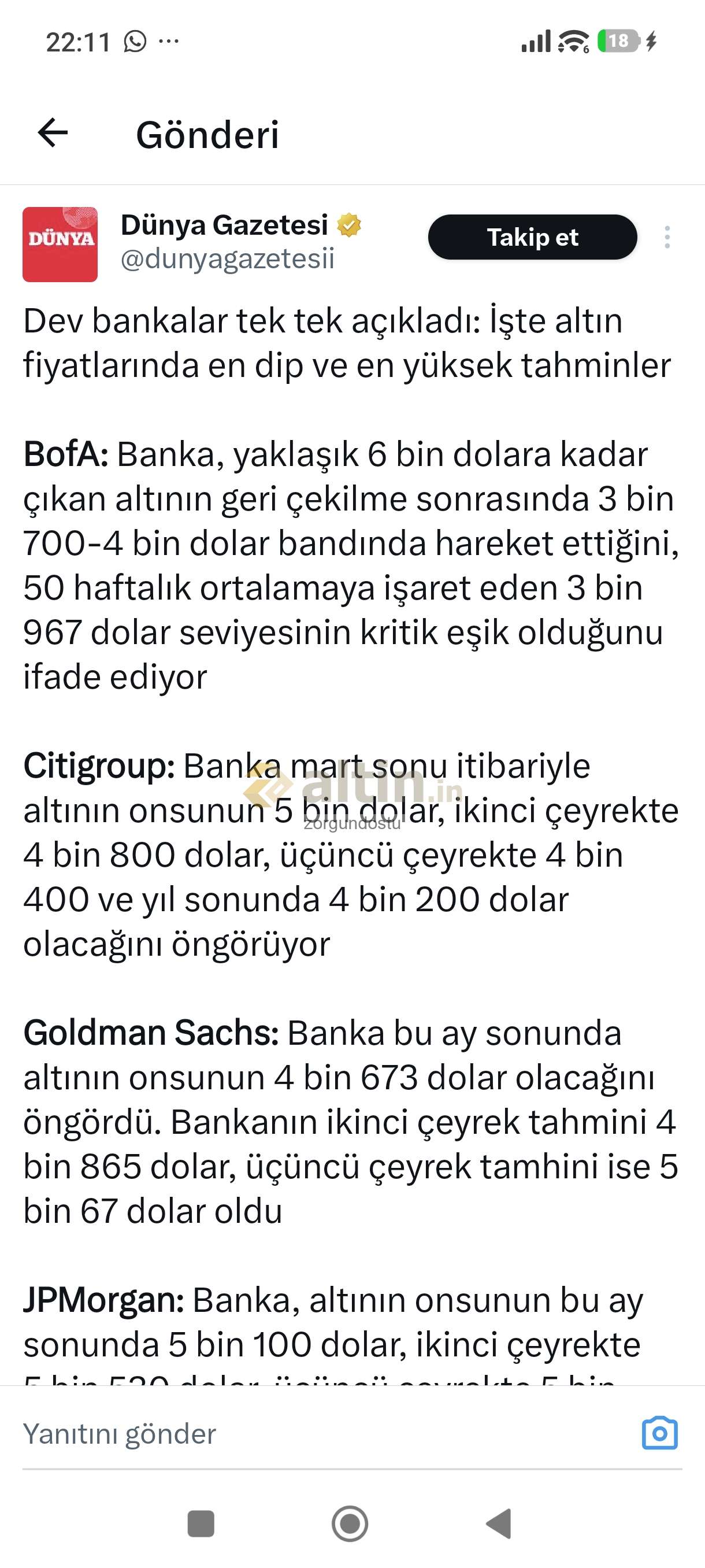 Fatih3416 ()Alttaki paylastigim tabloda büyük bankalaein güncel Altın tahminleri yeralmaktadir